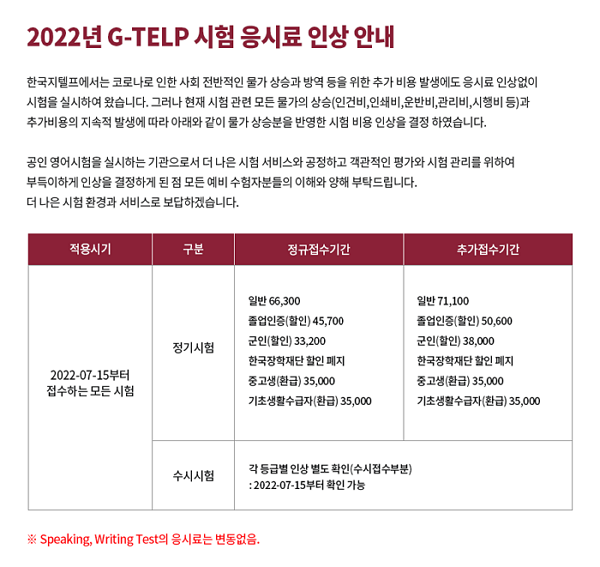 그러나, 추가 접수 기간에는 지텔프 시험 응시료가 더 비싸지니