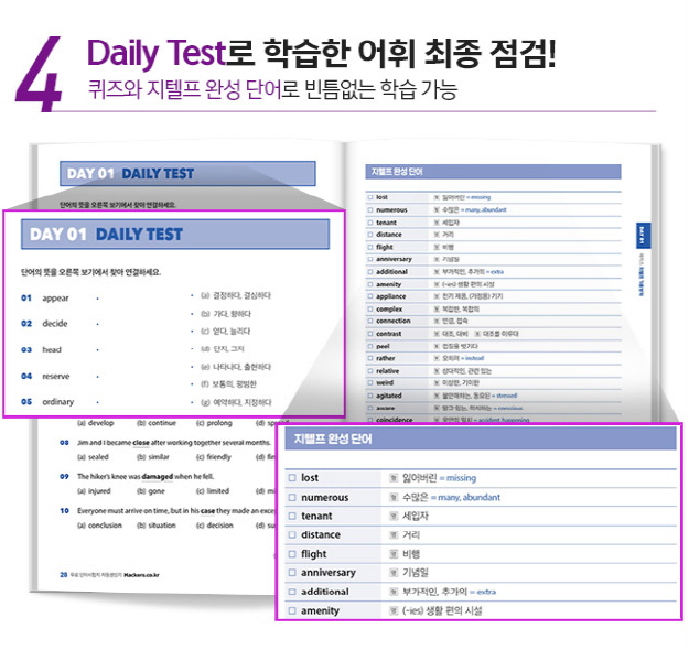 이 책에는 Daily Test가 실려있기 대문에 부족하게 외운 부분이 있다면