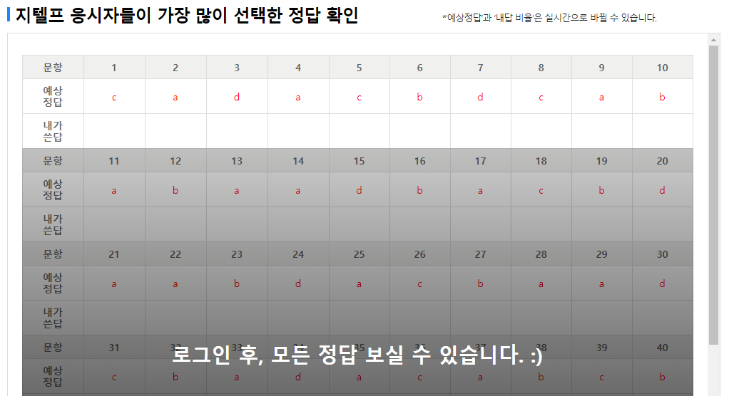 그래서 오늘은 ★100% 무료 지텔프 정답서비스★ 이용해서