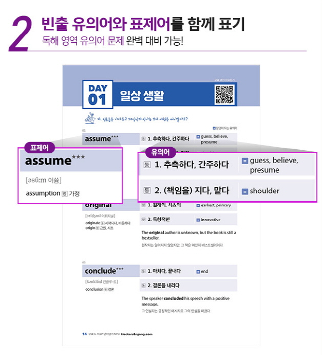 빈출 유의어와 표제어가 함께 표기되어 있어서