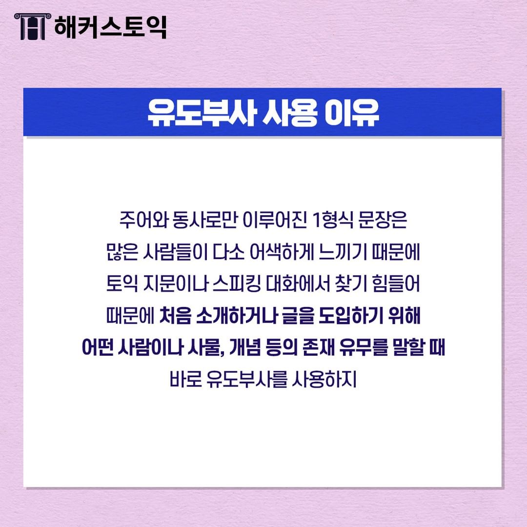 어떤 존재를 유도하기 위해 문장의 맨 앞에 위치하는 부사입니다!