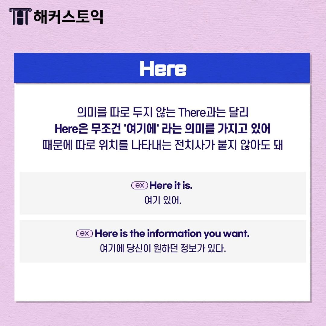 Here은 무조건 '여기에'라는 의미를 가지고 있답니다!