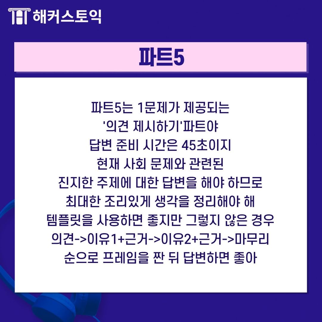 파트 5는 의견 제시하기 파트입니다!