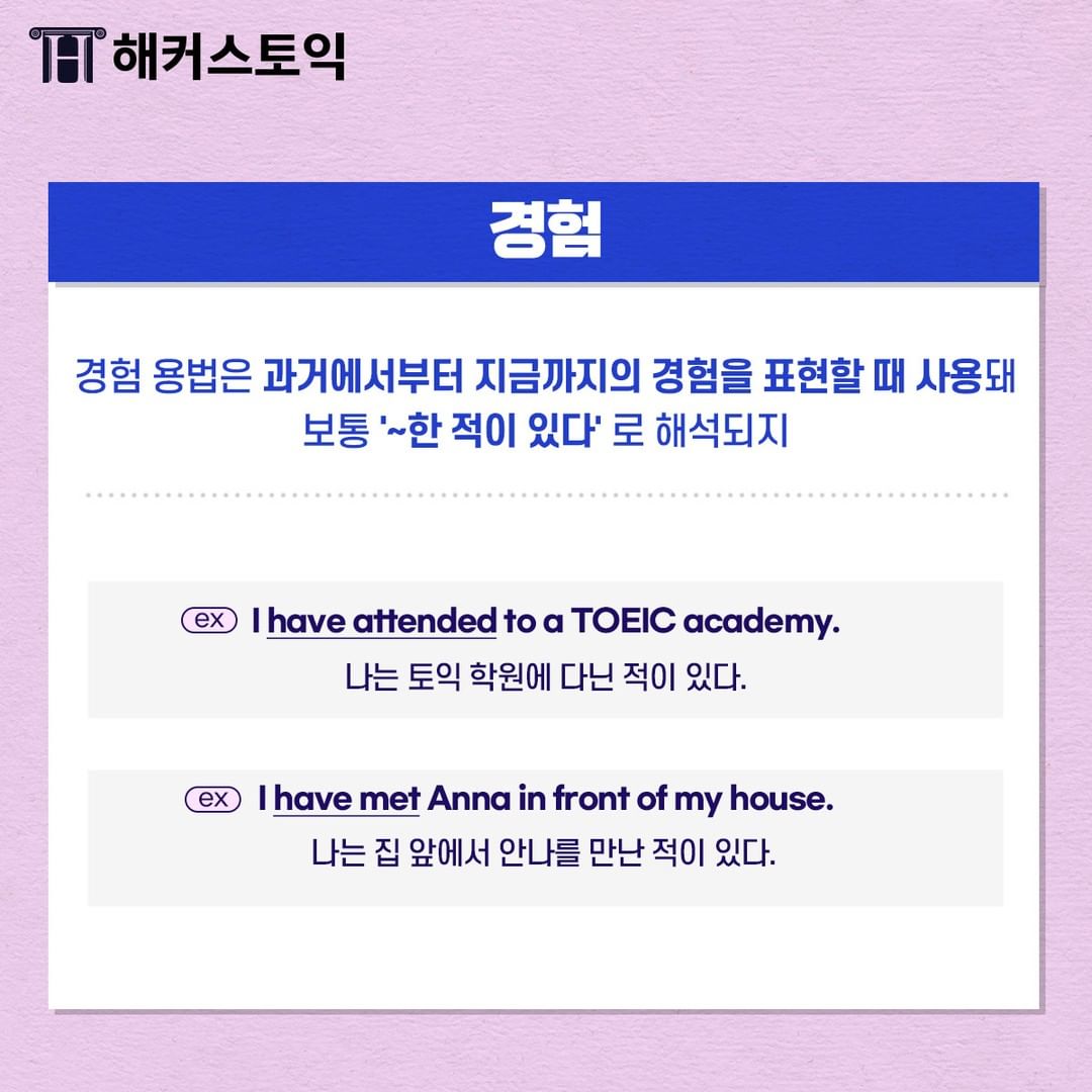 경험 용법은 과거에서부터 지금까지의 경험을 표현할 때 사용돼요