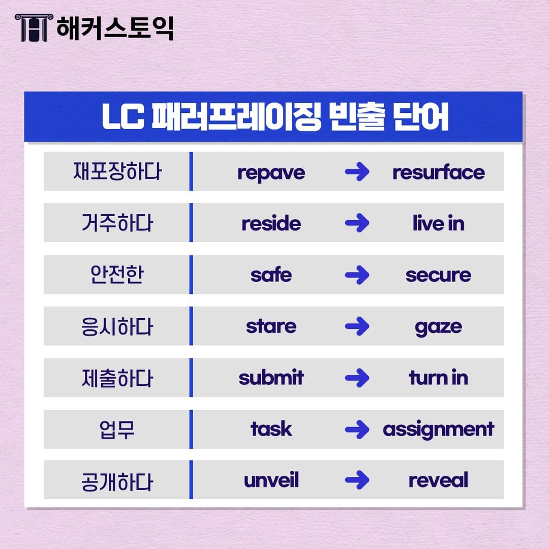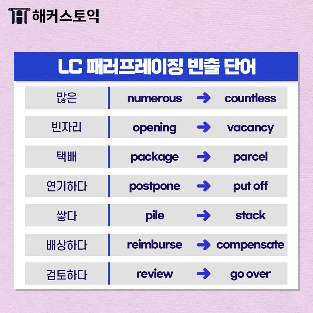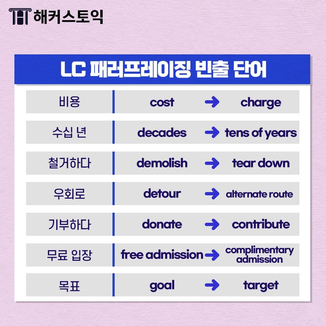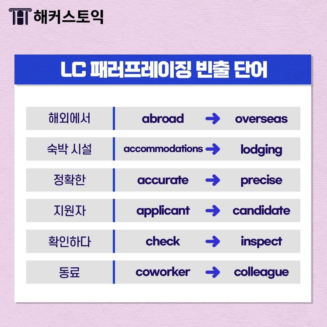 LC 패러프레이징 빈출 단어