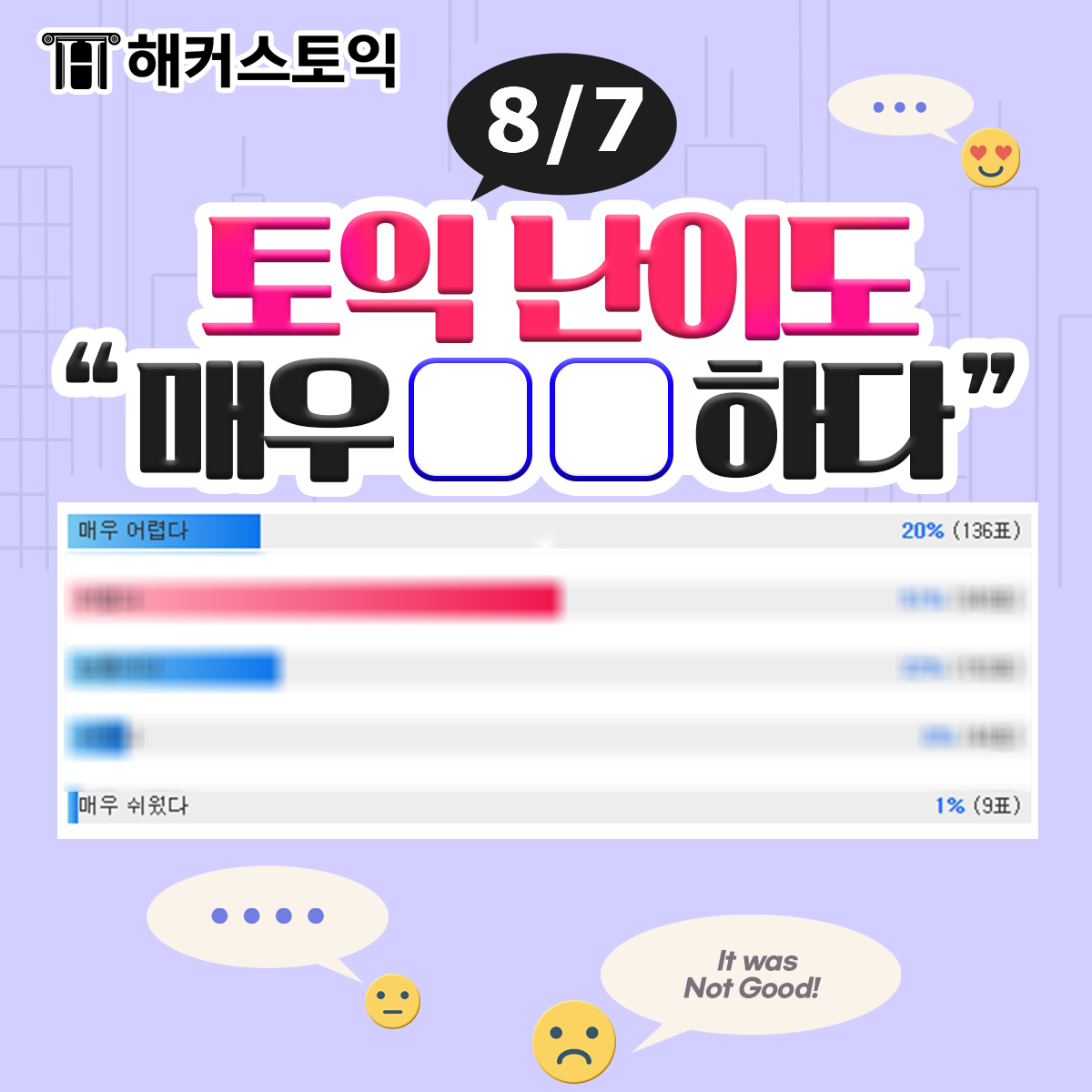 8월 7일 토익난이도를 어떻게 느끼는지 알 수 있을 거에요~
