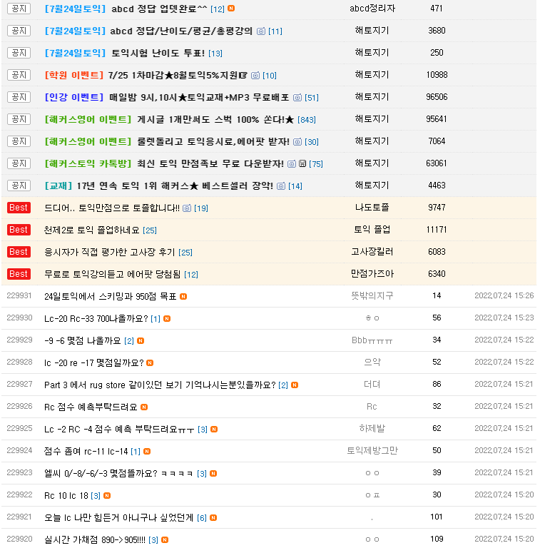 나뿐만이 아니라 다른 토익수험생분들이
