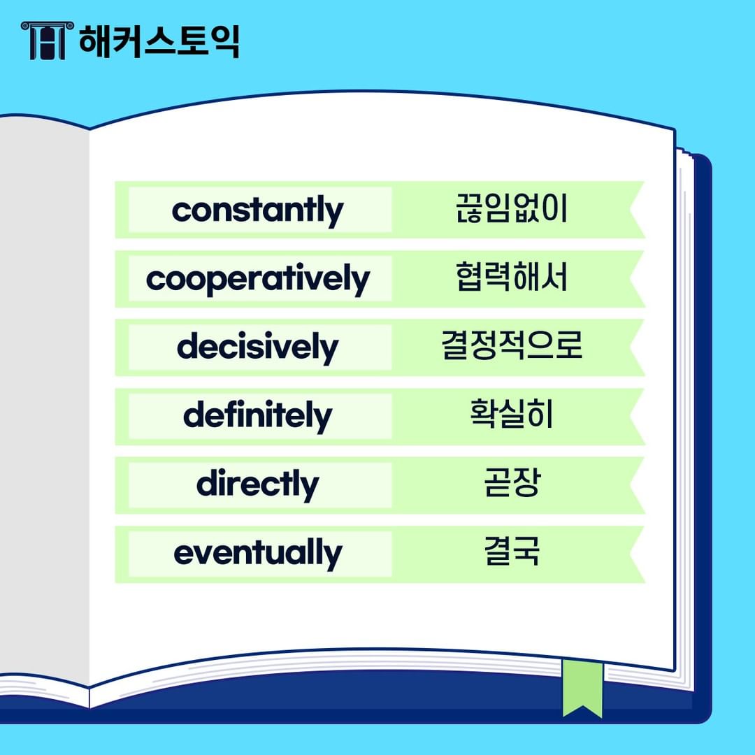 오늘 배운 부사들은 토익 시험에 자주 나오는 단어들이니
