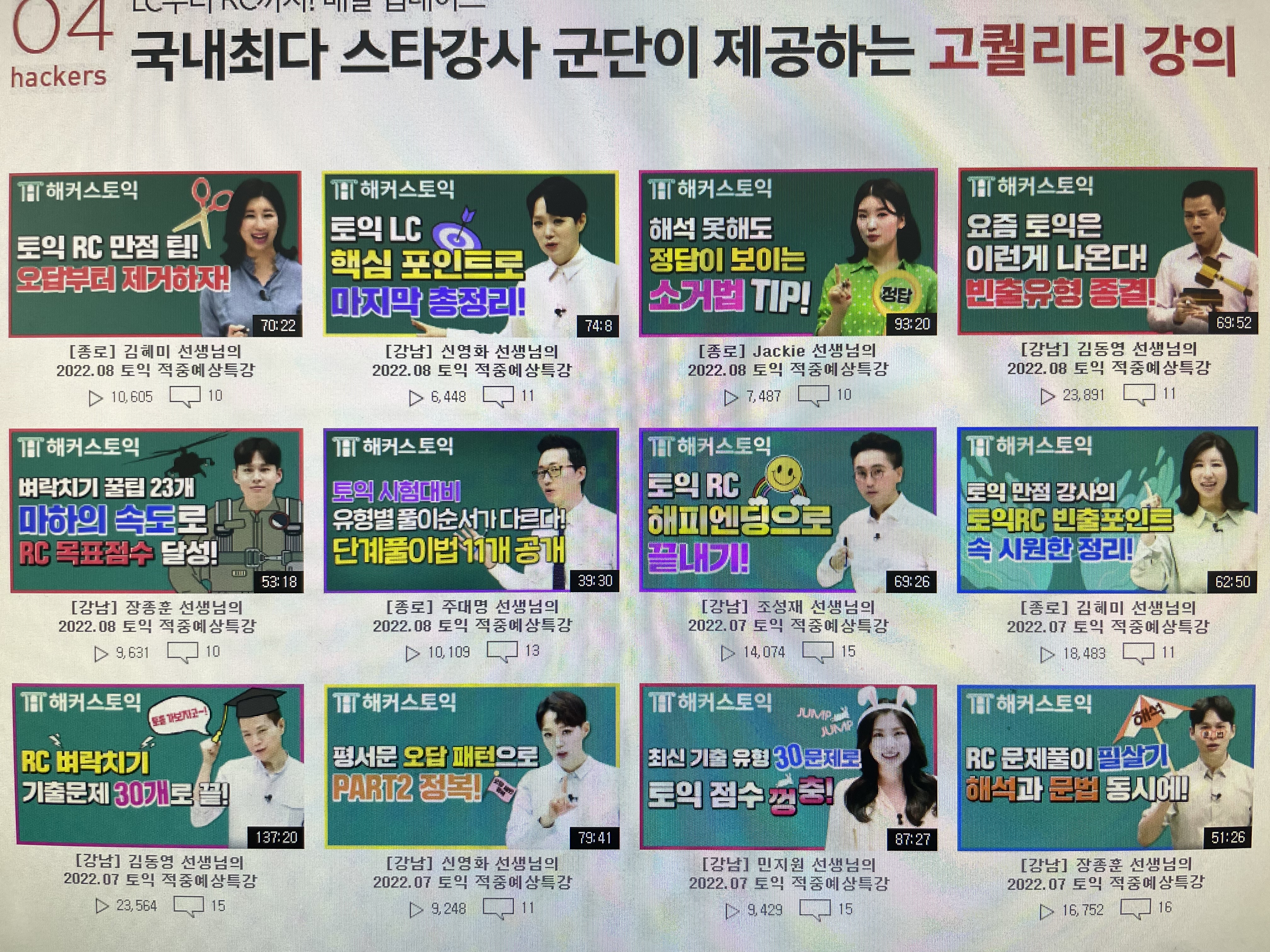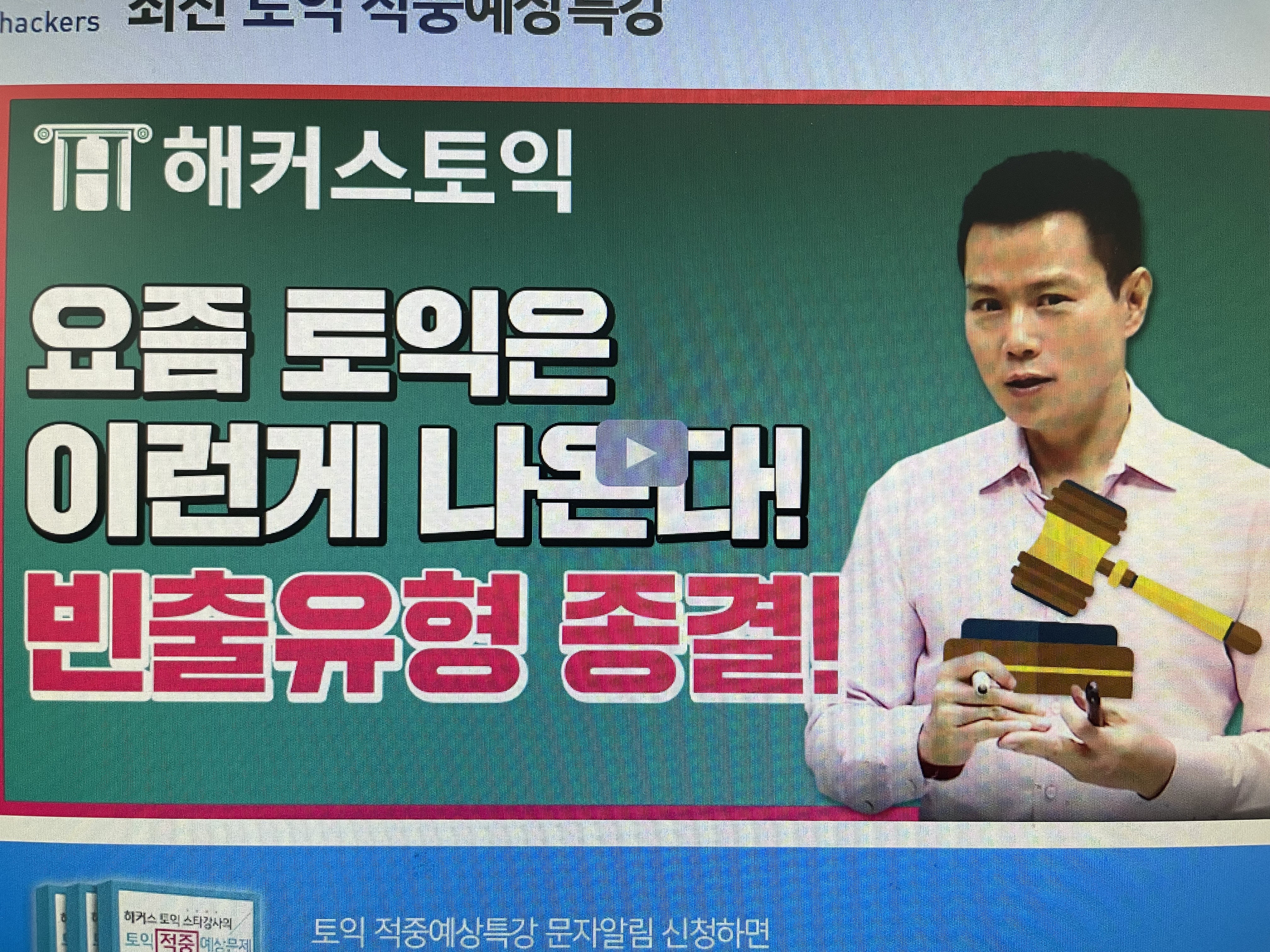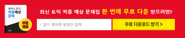 오늘 알려드린 해커스 스타강사 선생님들이 토익비법을 실제 토익문제에 적용해보세요. 토익적중예상특강은 해커스토익 사이트에서 선생님들이 무료로 실전문제와 해설강의를 제공해주는 좋은 콘텐츠 입니다. 실제 시험에 적중했던 내용도 많아서 시험전에 풀어보고 가시면 실전문제 유형별로 적응하고 시간분배연습도 하고 큰 도움이 됩니다. 무엇보다 해설강의까지 무료로 들을 수 있으니 리뷰하면서 최신 토익시험 경향에 대해서도 팁 많이 얻어보세요!