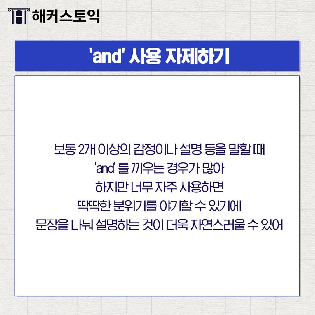 'and'를 너무 자주 사용하면 딱딱한 분위기를 야기할 수 있기 때문에
