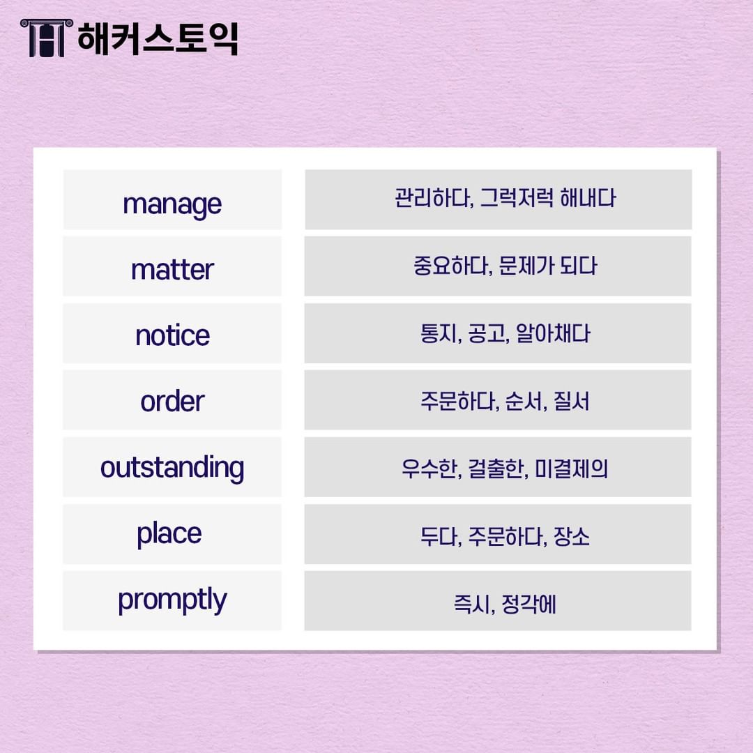 꼼꼼하게 외워서 해석 유연하게 해보아요~