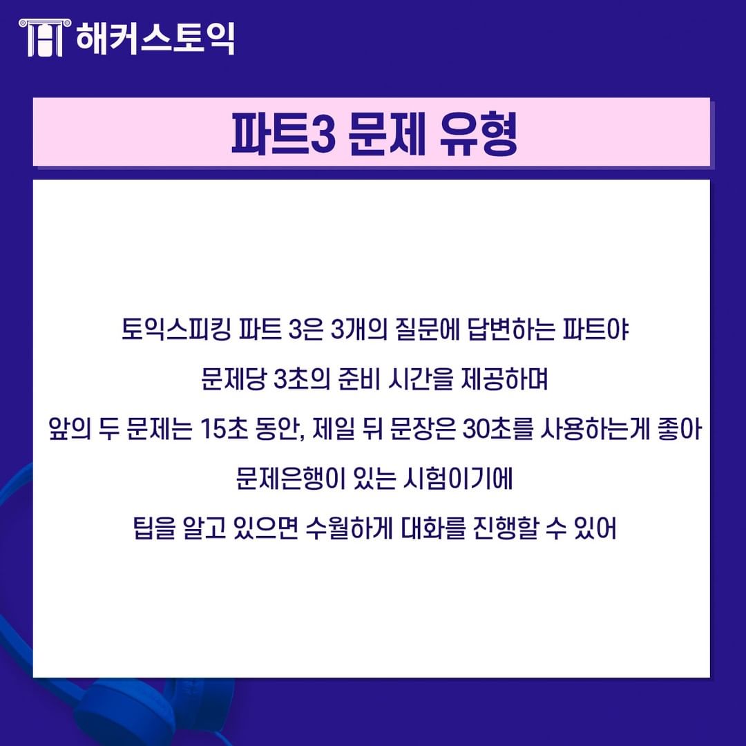 토익스피킹 파트 3은 3개의 질문에 답변하는 파트에요