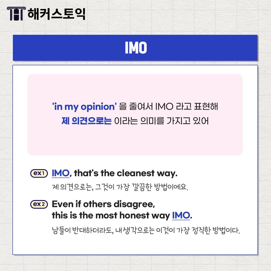'in my opinion'을 줄여서 IMO라고 표현해요