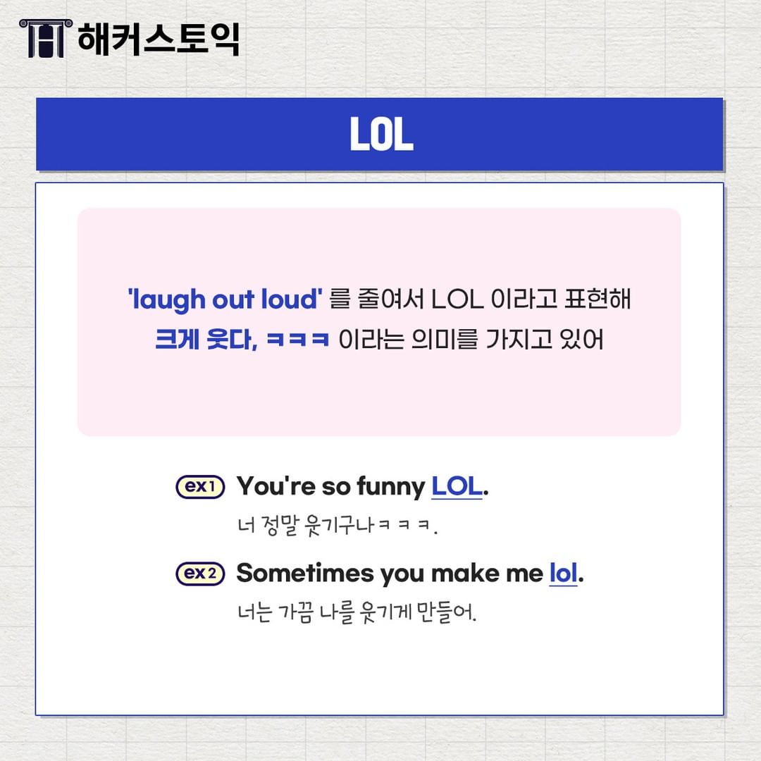 'laugh out loud'를 줄여서 LOL이라고 표헌합니다!