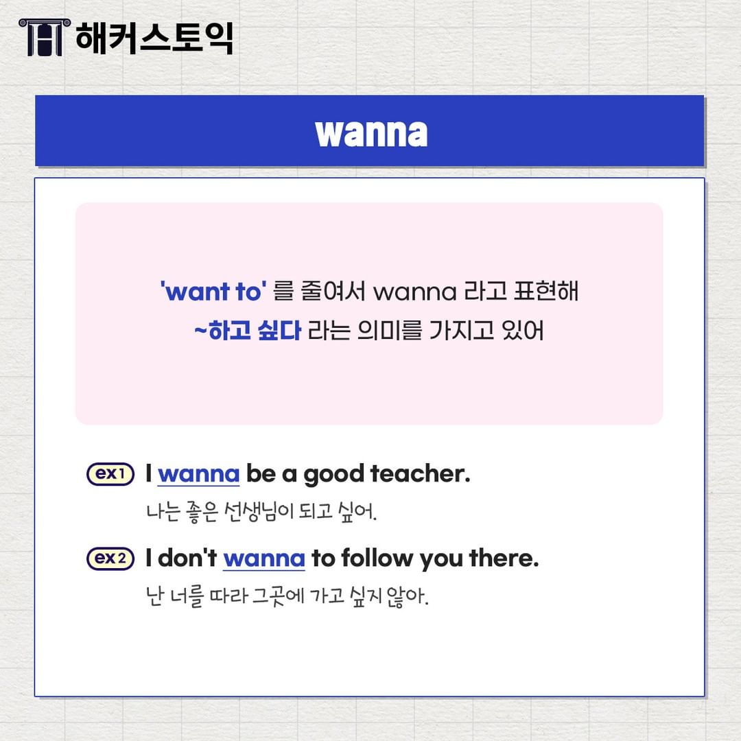 'want to'를 줄여서 wanna라고 표현합니다!