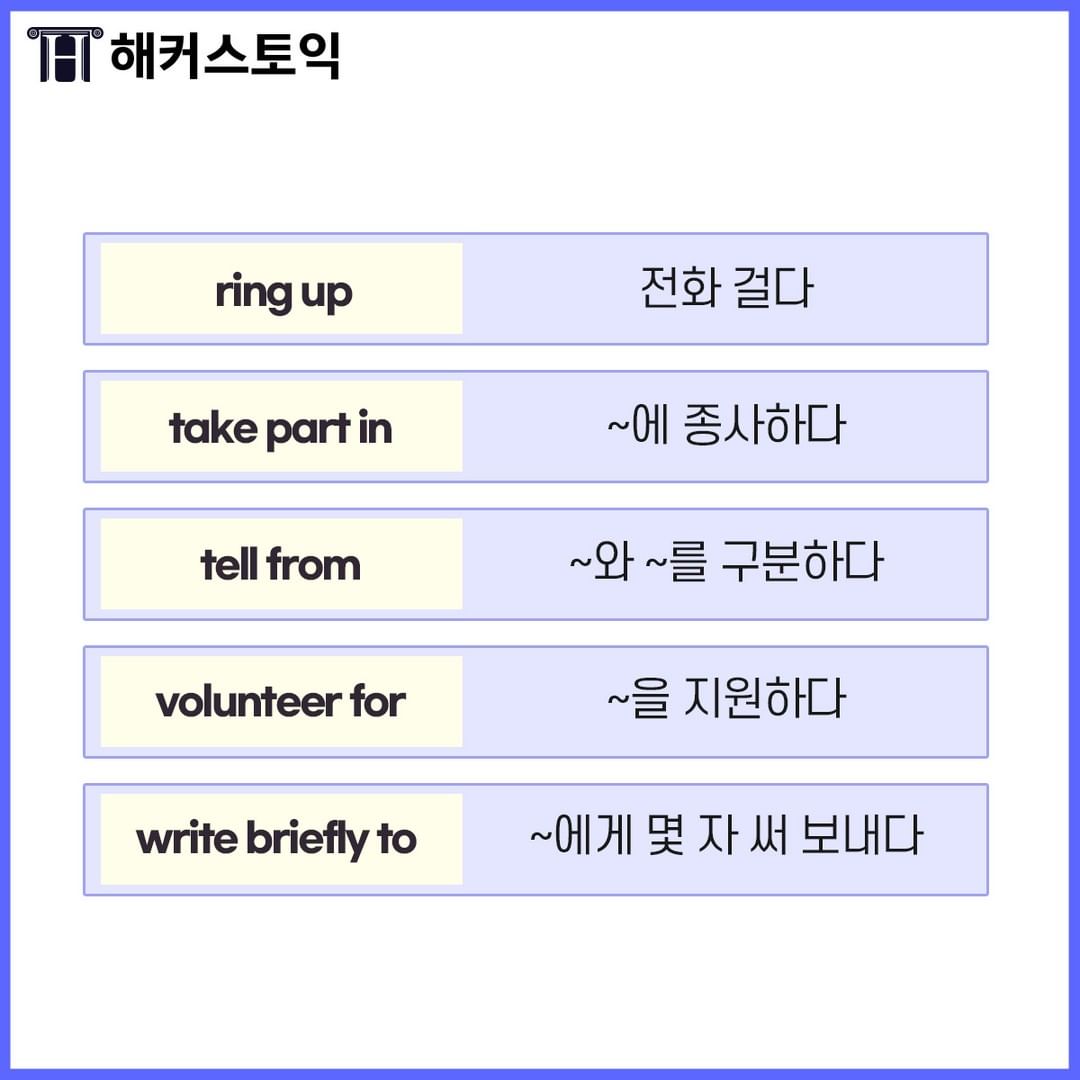 | 20시에 만나는 20가지 토익 필살 숙어! (1) | 2022.08.18 |