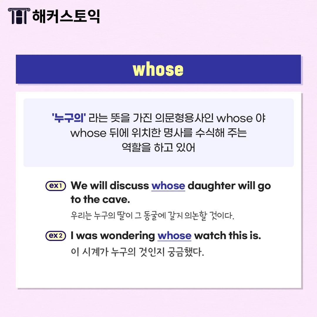 whose 뒤에 위치한 명사를 수식하는 역할을 한답니다!