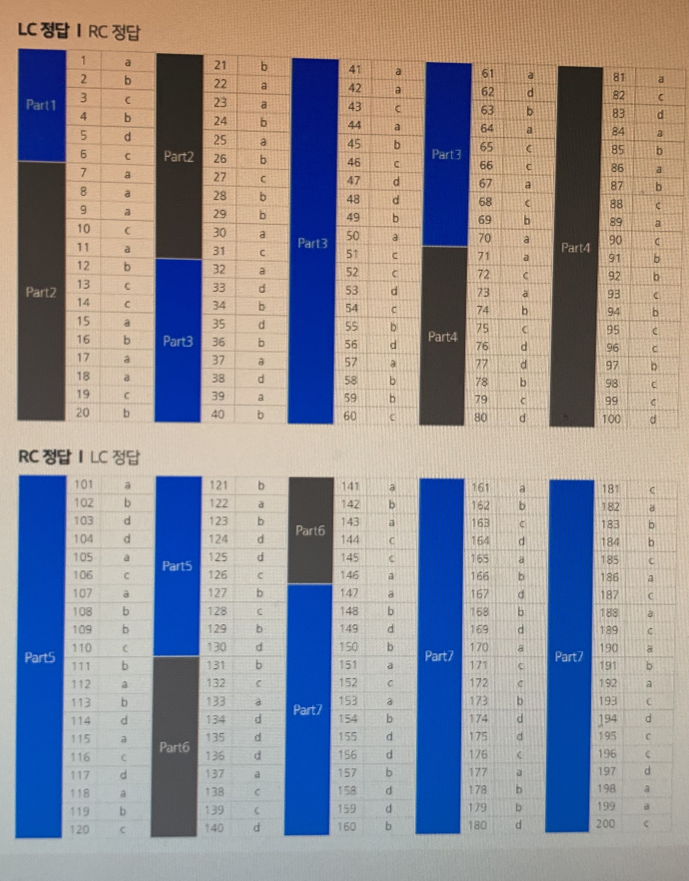 특히 RC 파트 문제들의 정답이 무엇인지