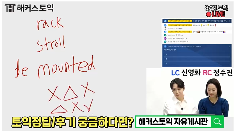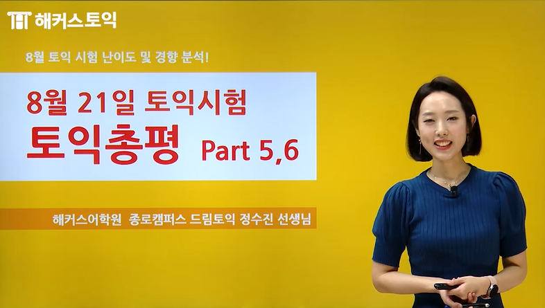 해커스 정수진 선생님께서 8월 21일 토익 시험 RC 파트에 대한 후기를 알려주시니