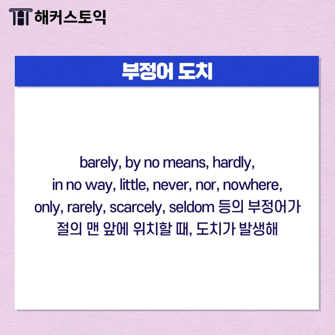 부정어가 절의 맨 앞에 위치할 때 도치가 발생해요~