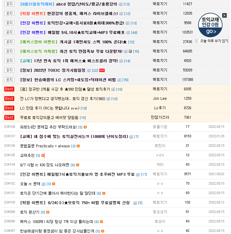 토익 시험에 대한 모든 것들에 대해서 이야기 나눠볼 수 있으니까 알아두세요!