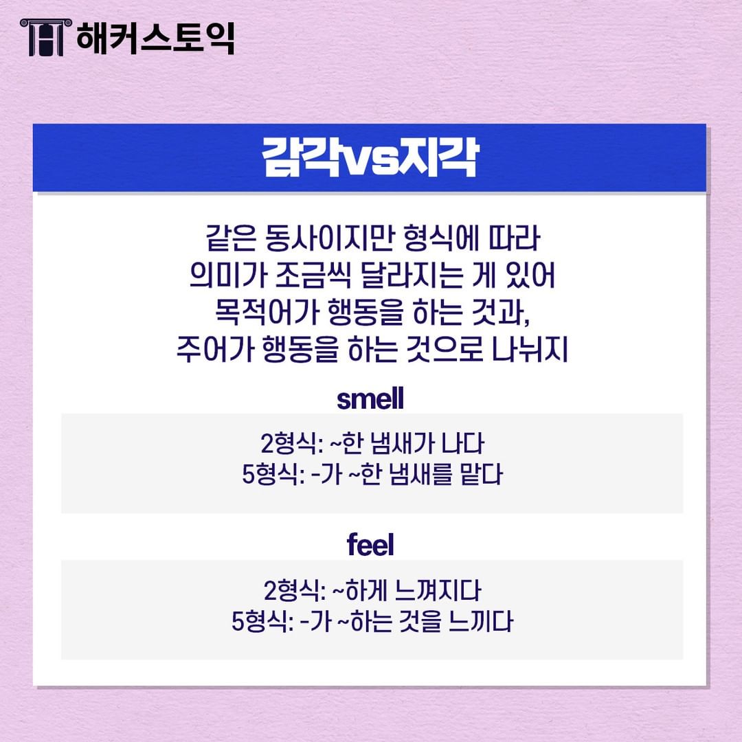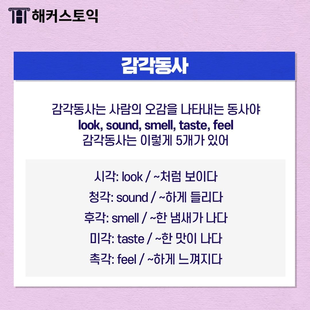 감각동사는 사람의 오감을 나타내는 동사랍니다!