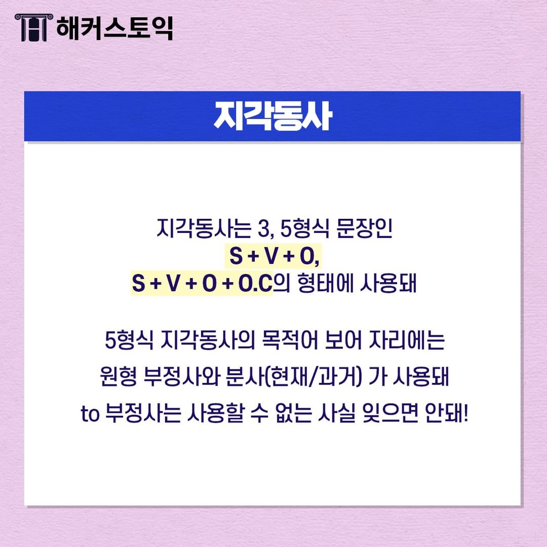지각동사란 사람의 감각기관을 통해 인식하는 동사에요!