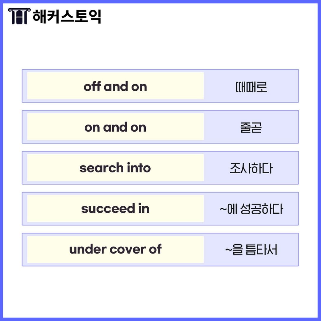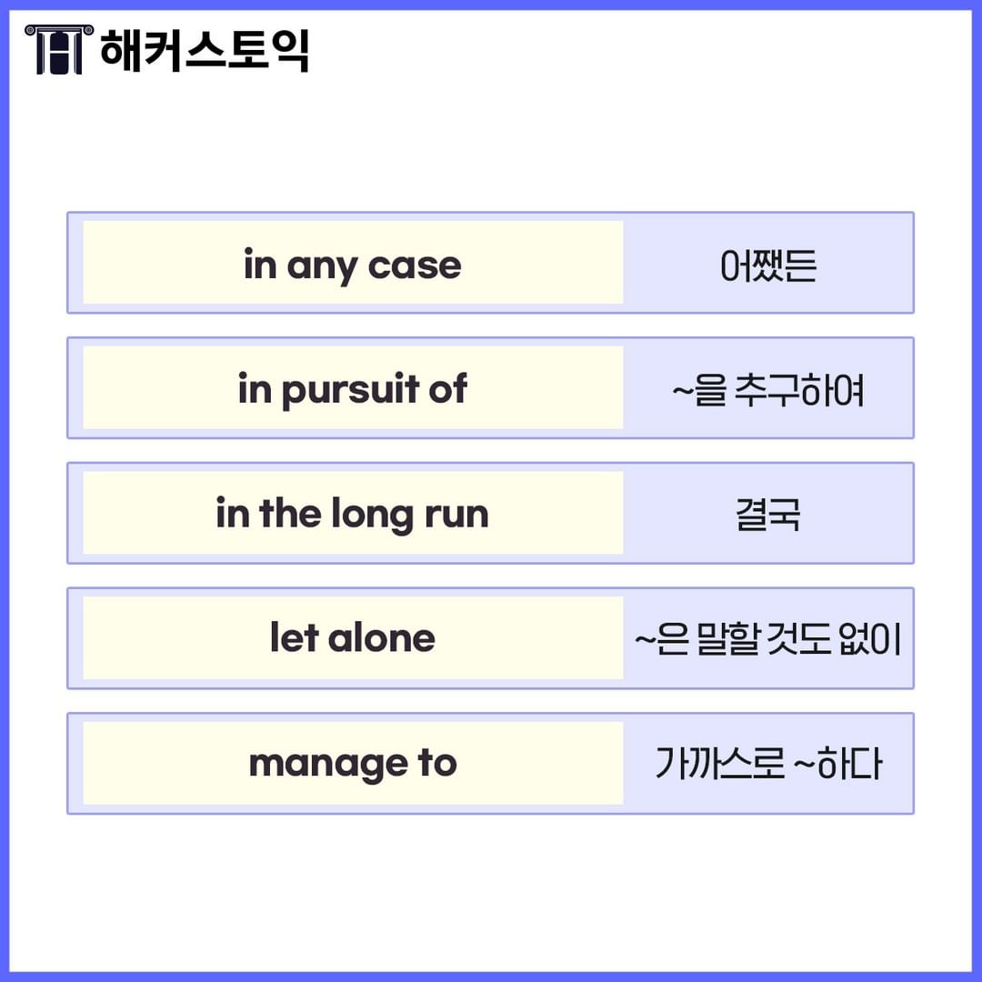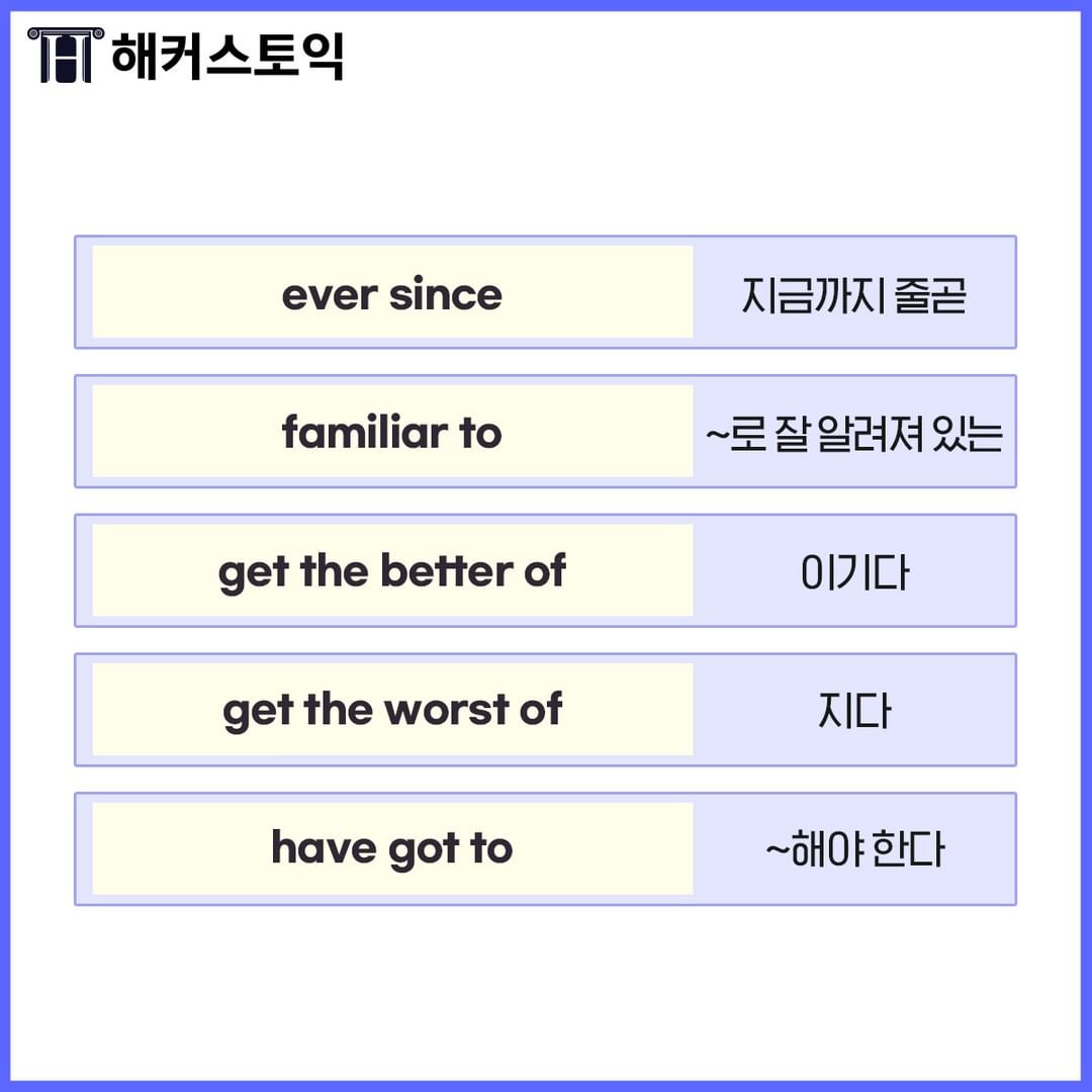 오늘 배운 숙어들 사실 익숙하진 않은 숙어들이 많을 거에요