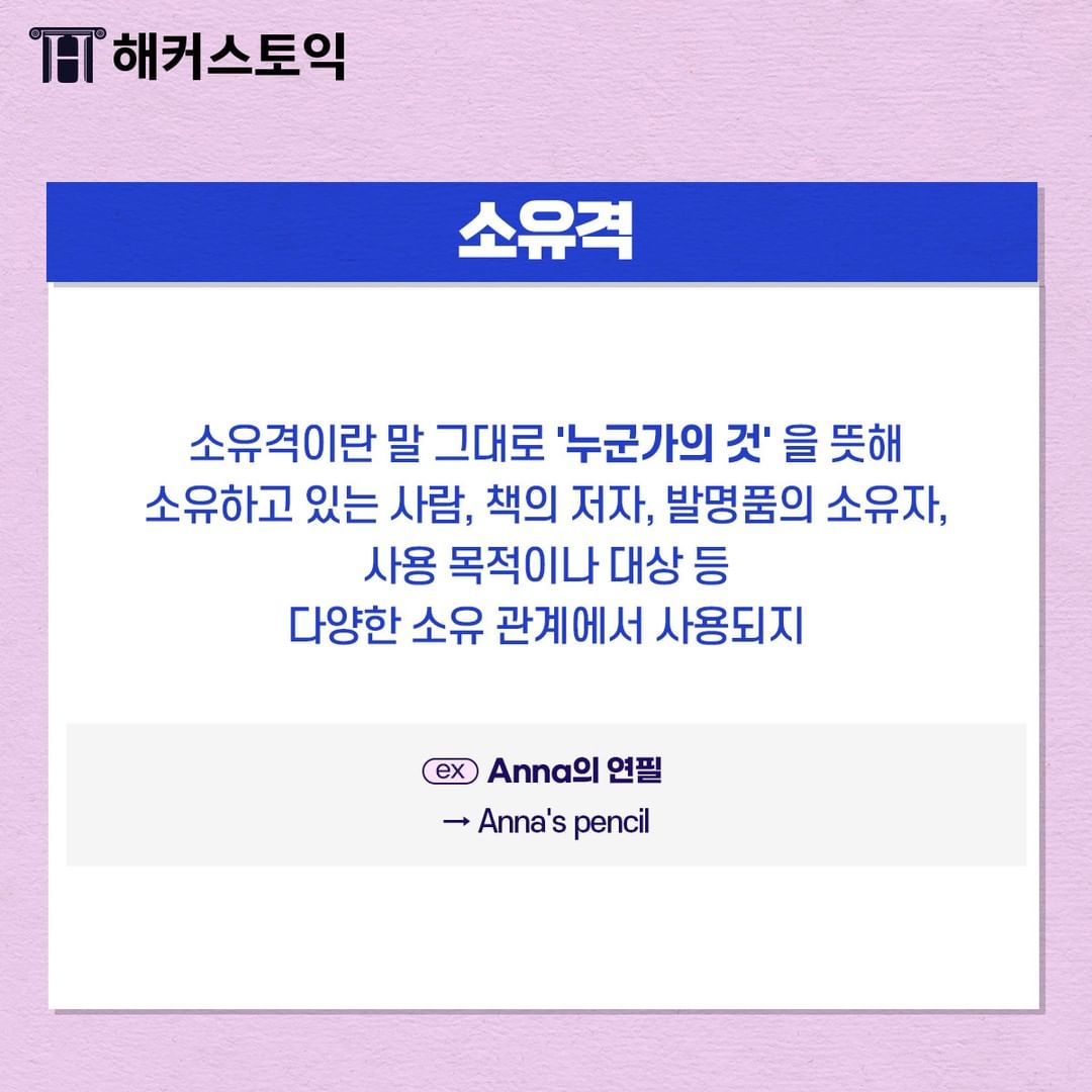 소유격이란 누군가의 것을 뜻합니다!