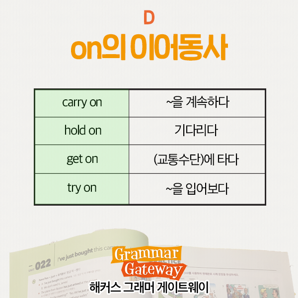 이어동사 예시 - on을 사용하는 이어동사 |