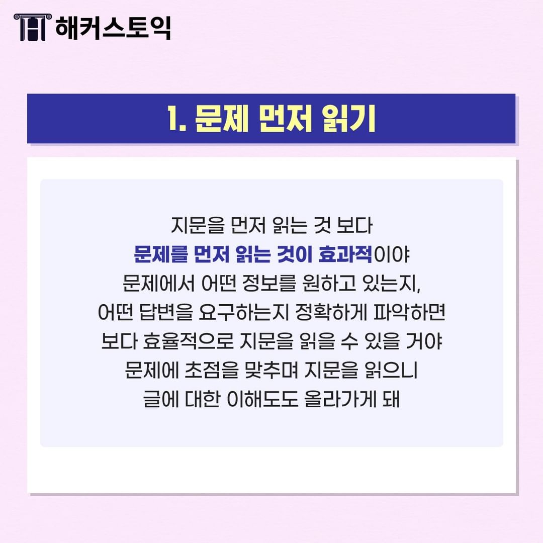 문제를 먼저 읽는 것이 효과적이랍니다!