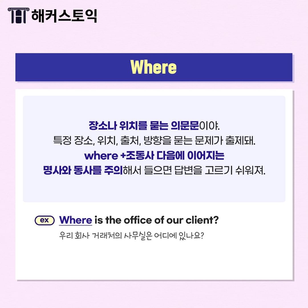 특정 장소, 위치, 출처, 방향을 묻는 문제가 출제되죠~