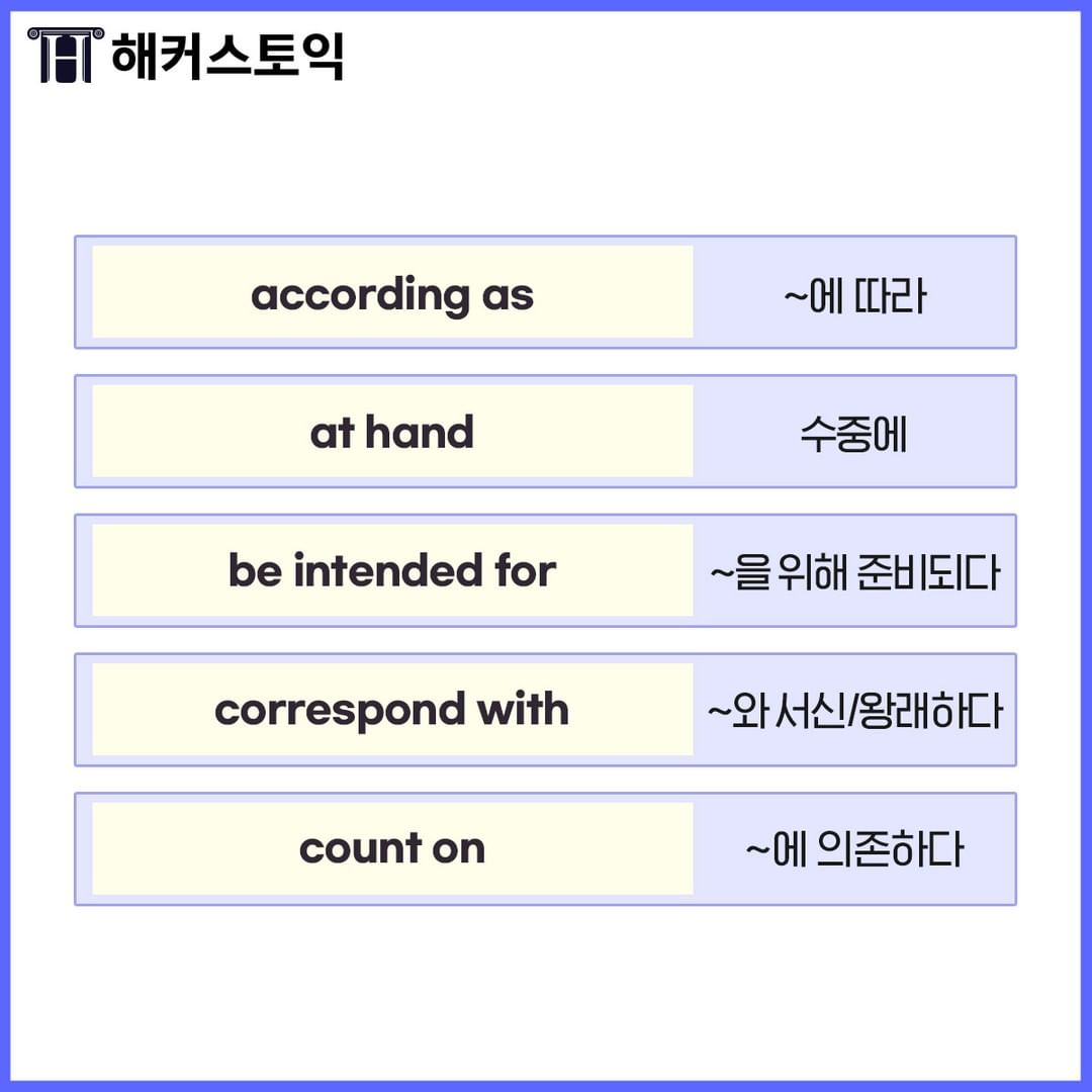 | 20시에 만나는 20가지 토익필살숙어 <1편> (0) | 2022.09.05 |