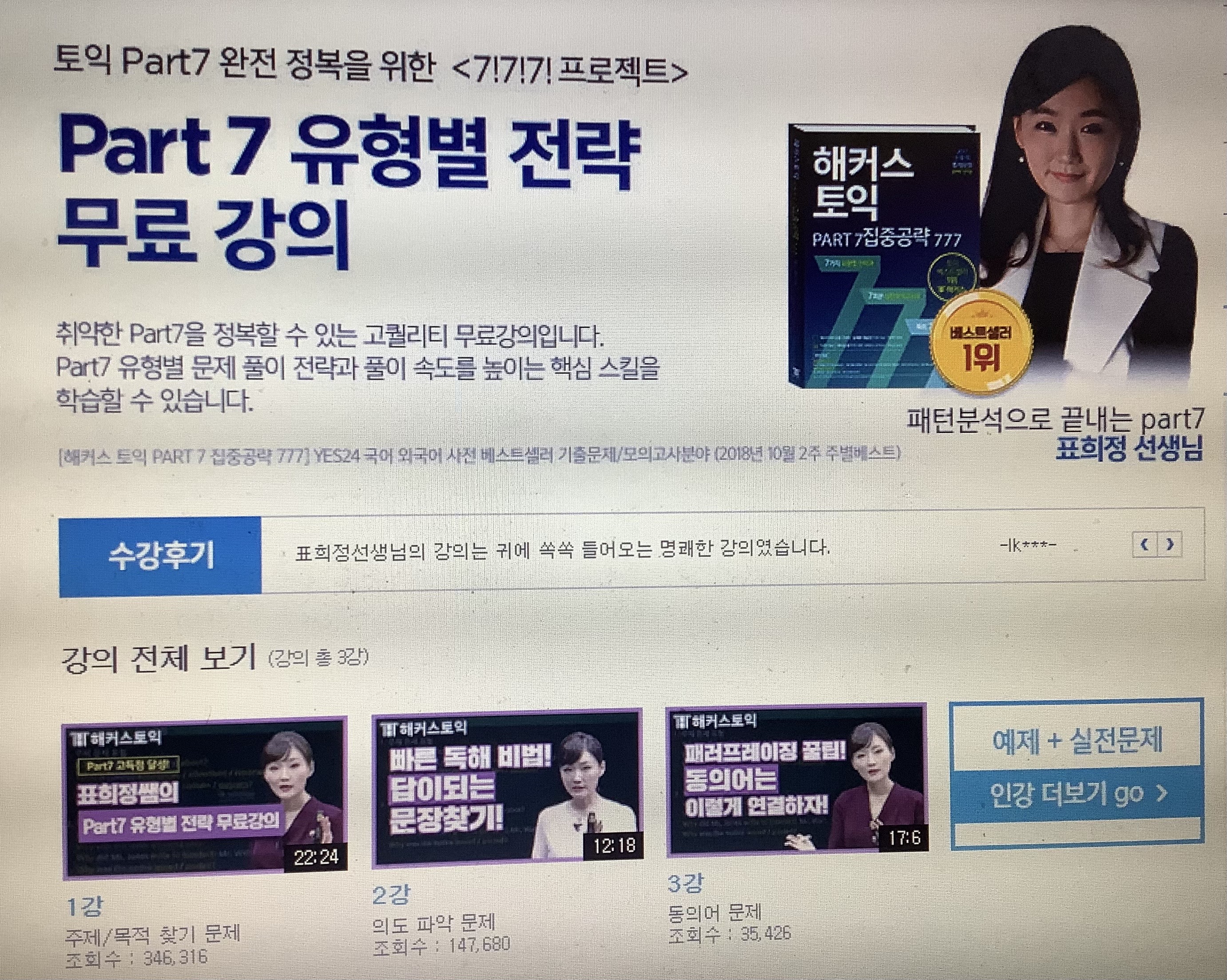 표희정 선생님이 Part7 집중공략 무료강의 통해서
