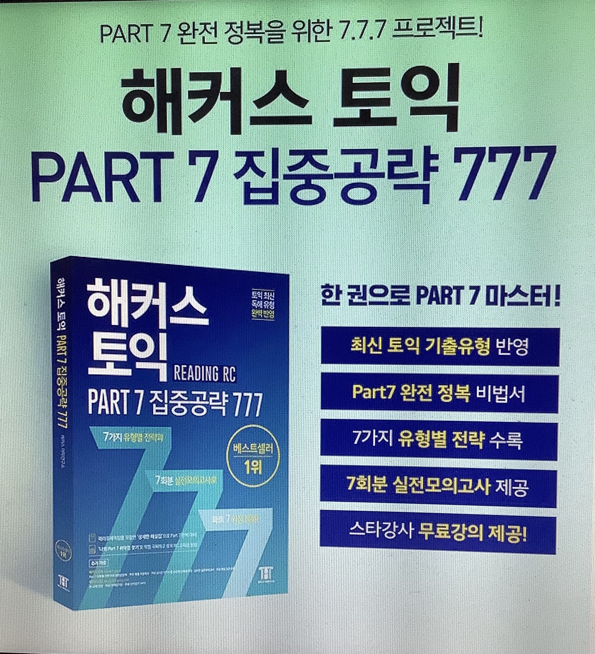 그래서 오늘은 파트 7을 완벽하게 잡게 해주는 토익책추천하려고 해요