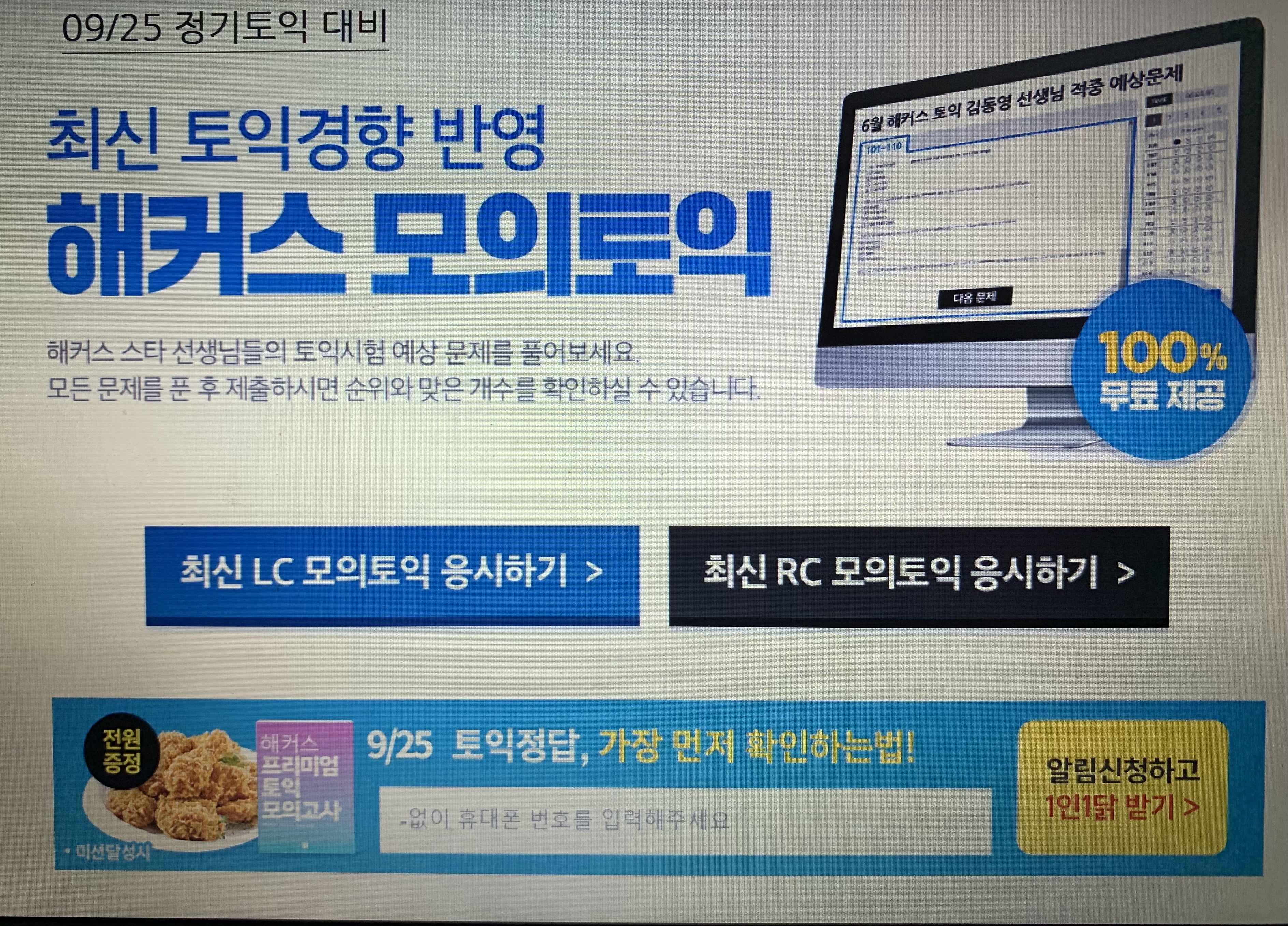 실전을 미리 경험해볼 수 있으니 토익 시험에 도움이 되겠죠?