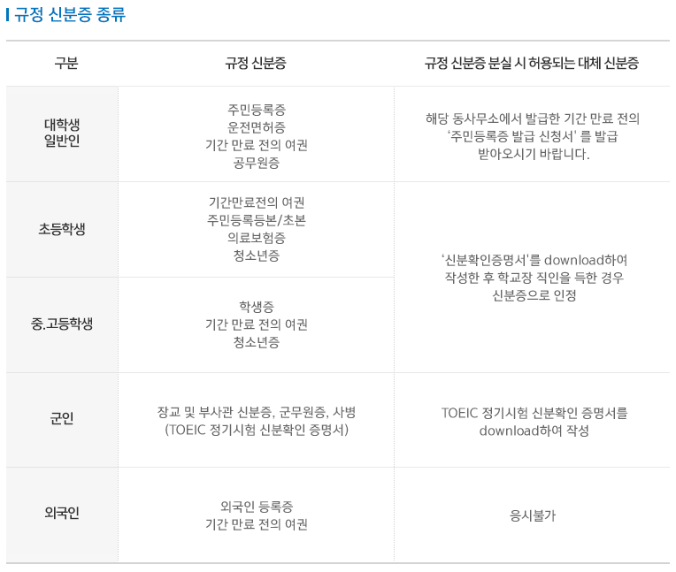 신분증이 없다면 절대로 토익시험 칠 수 없으니까
