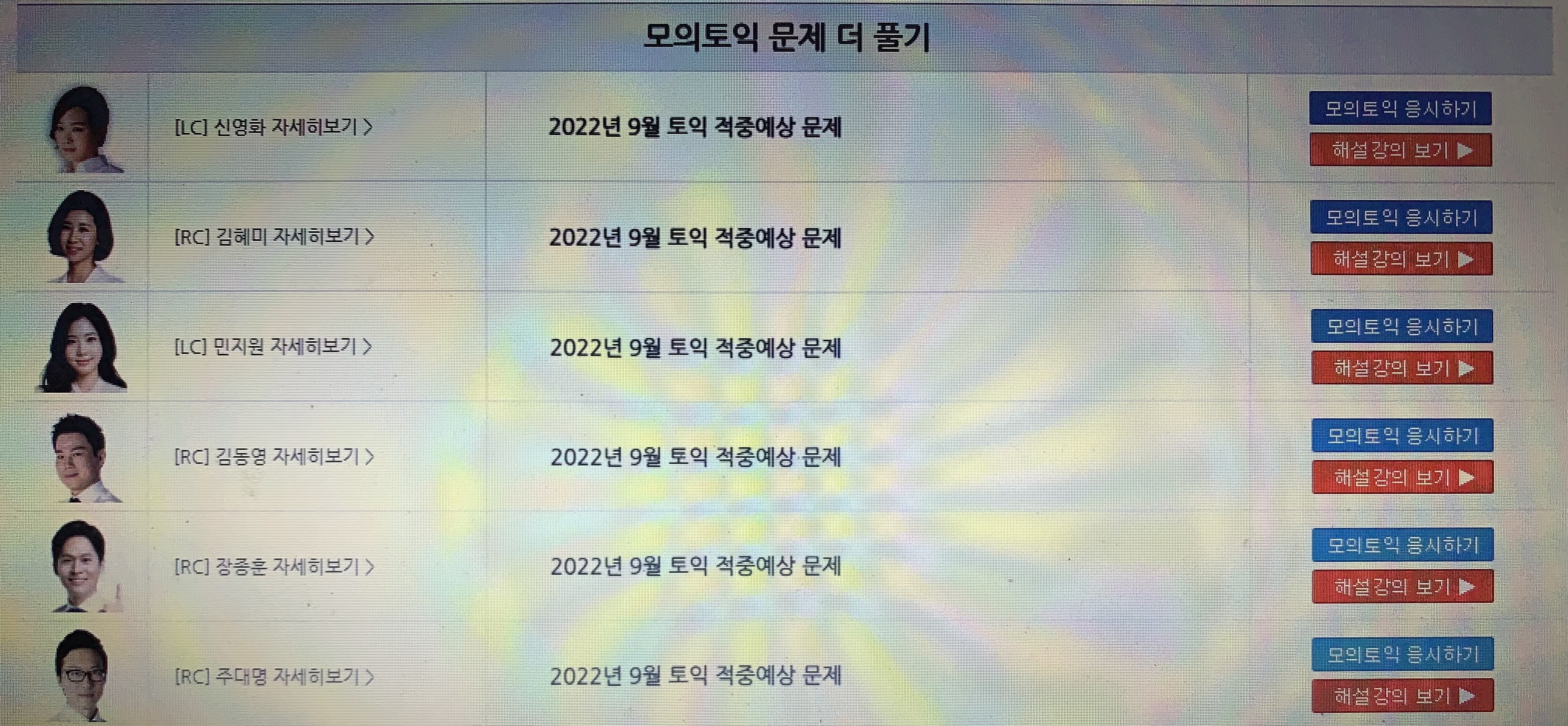 스타강사 선생님들의 토익 문제가 모두 업데이트 되었으니