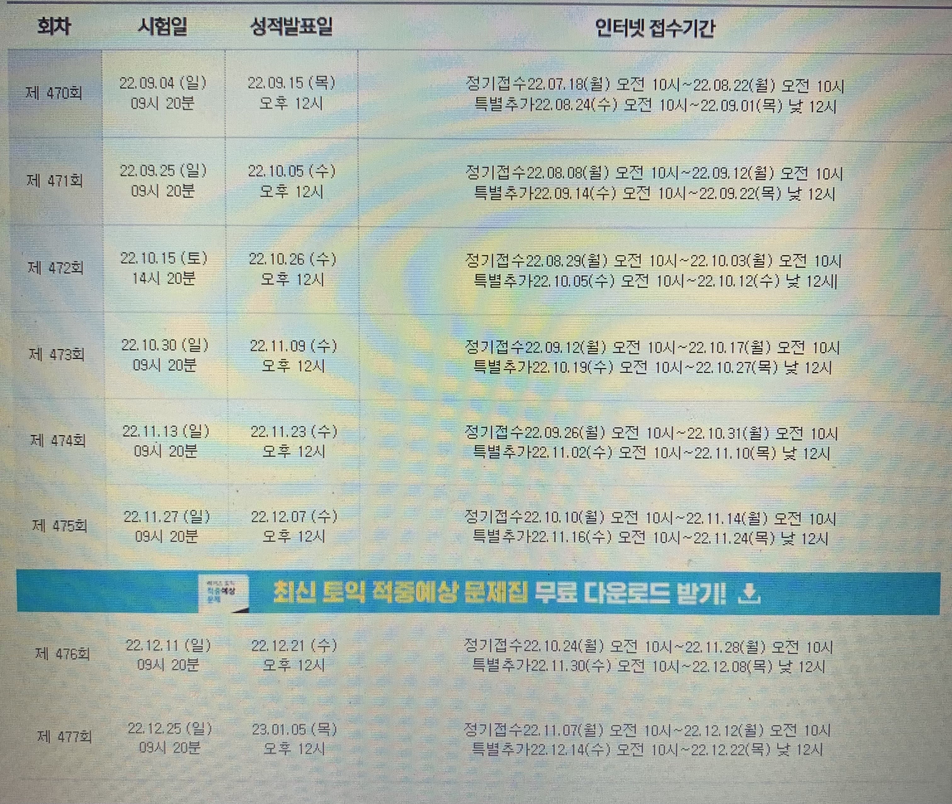 미리 토익 시험 언제볼 지 결정하고 바로 접수하시면 좋을 것 같습니다!