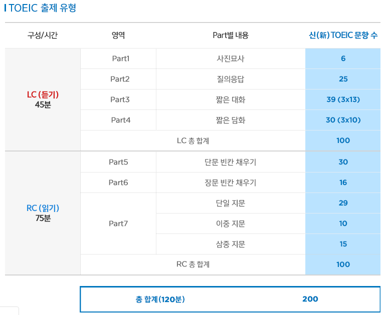 생각보다 토익시험시간을 정확하게 알고 있는 분들이 많지 않더라구요