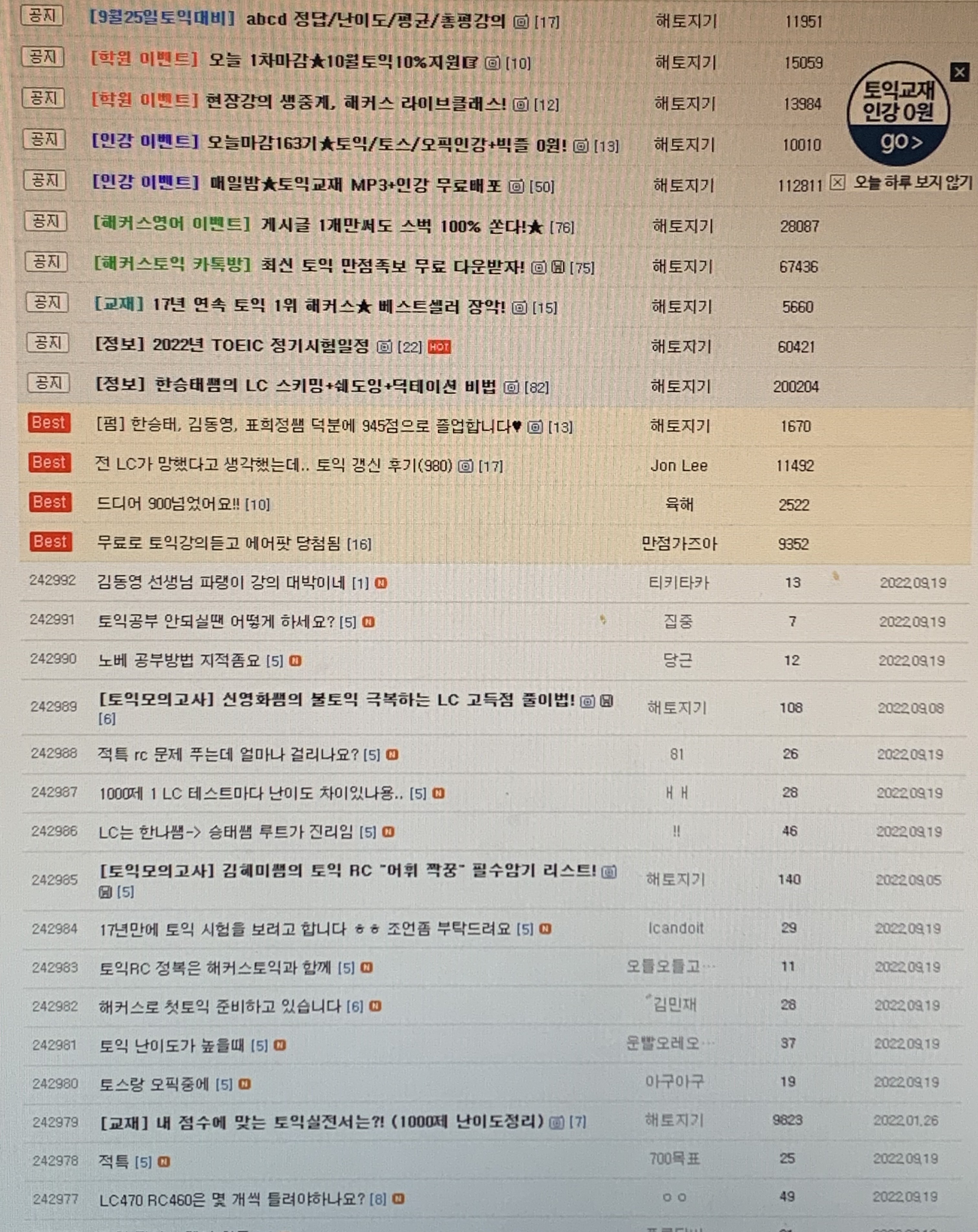 토익자유게시판에서는 토익 시험에 대한 모든 것