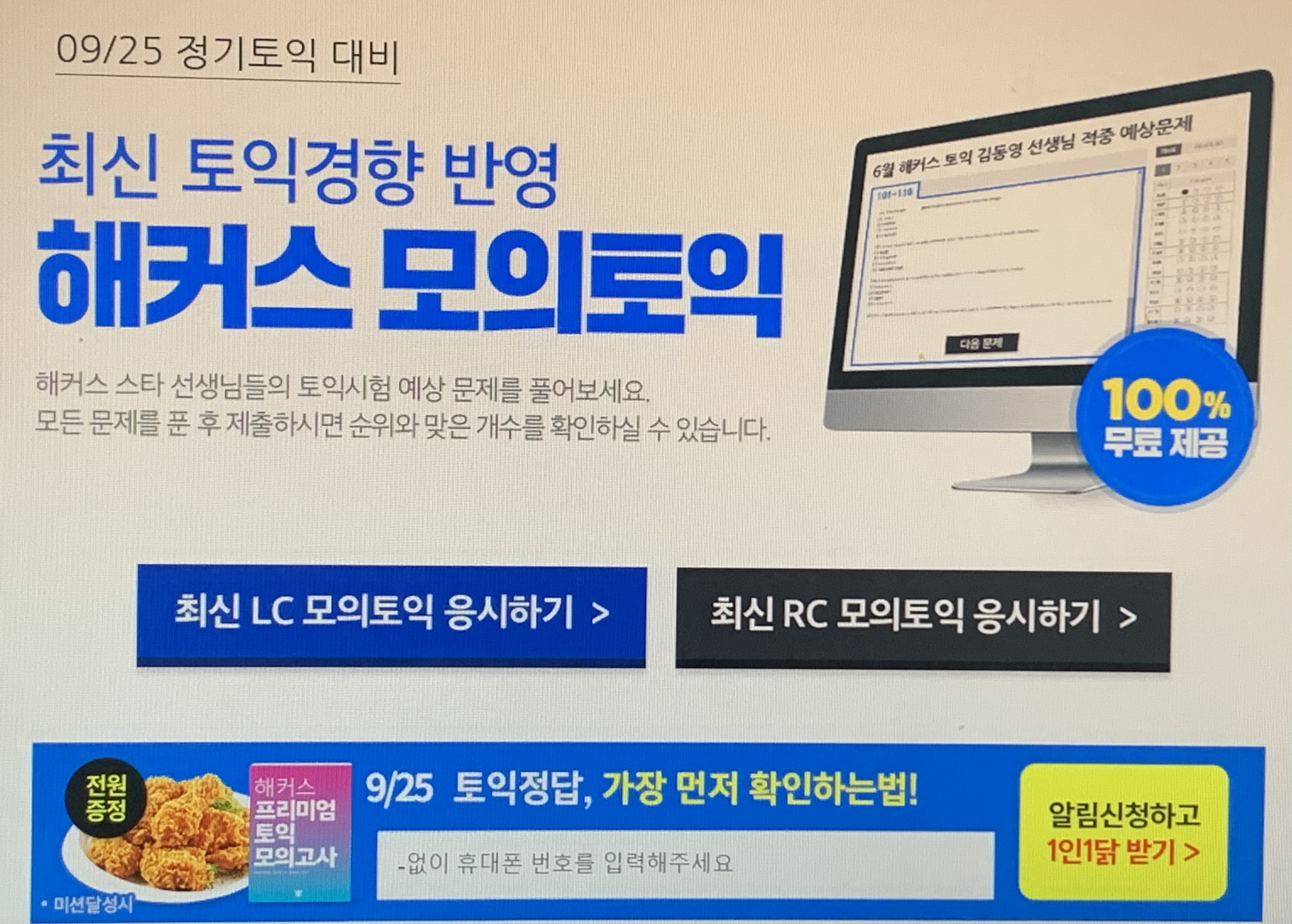 마지막으로는 얼마 남지 않는 9월 25일 토익 시험 대비