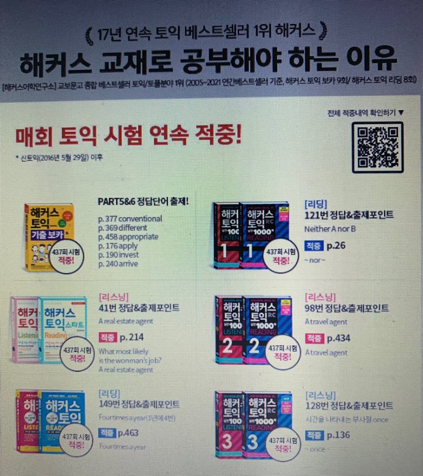 토익 시험 적중률도 굉장히 높은 편이에요!