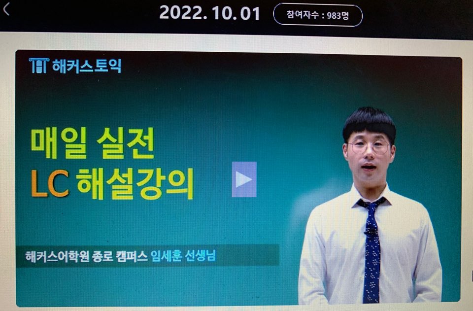 받아쓰기는 전날, 매일 실전 LC 풀기 의 문제들이 나온답니다~