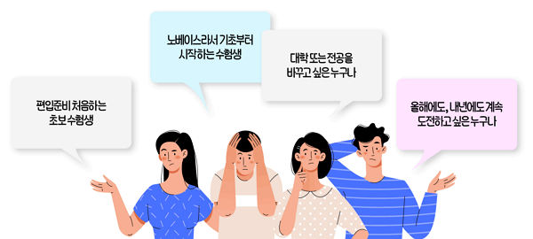 이런 제가 편입영어로 합격할 수 있을까요? 편입 영어가 어렵다는 이유로 도전하기도 전에 편입을 포기하는 학생들이 많습니다. 처음에는 편입 공부가 어렵고 힘들 수 있지만, 기초부터 차근차근 시간을 두고 공부한다면, 편입 영어 고득점이 가능합니다. 편입 영어의 경우, 공부 기간만 약 6개월 정도 시간이 소요되기 때문에 비교적 시간의 여유가 있는 방학부터 학습 계획을 세우고, 꾸준히 실천하는 것이 중요합니다. 편입영어 준비만 잘 해도 상위권 대학 진학이 가능하니, 포기하지 말고 꾸준히 공부한다면 누구나 편입에 성공할 수 있습니다.