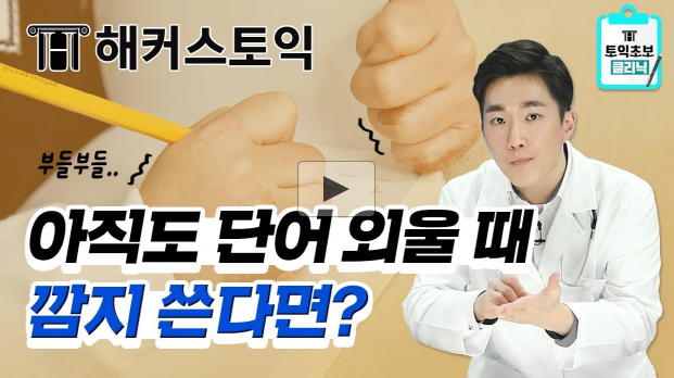 단어 암기, 정말 쉽지 않습니다. 그러나 토익 시험의 절반은 단어입니다. 그러니 제가 알려드리는 방법을 잘 따라오세요! 우선, 해커스토익 '노랭이' 단어책을 폅시다. 오늘 배울 Day 1 단어의 뜻을 가리고 쭉 한번 본 다음에 뜻이 바로 생각나는 쉬운 단어는 pass, 어려운 단어들은 한글 뜻과 함께 노트에 정리해주세요. 이렇게 되면 여리분만의 단어장이 생깁니다. 이렇게 만들어진 단어장 속의 단어는 뜻과 함께 눈으로 외우며 읽어주세요. 깜지를 백백하게 쓰는 것은 팔만 아프고, 비효율적입니다.