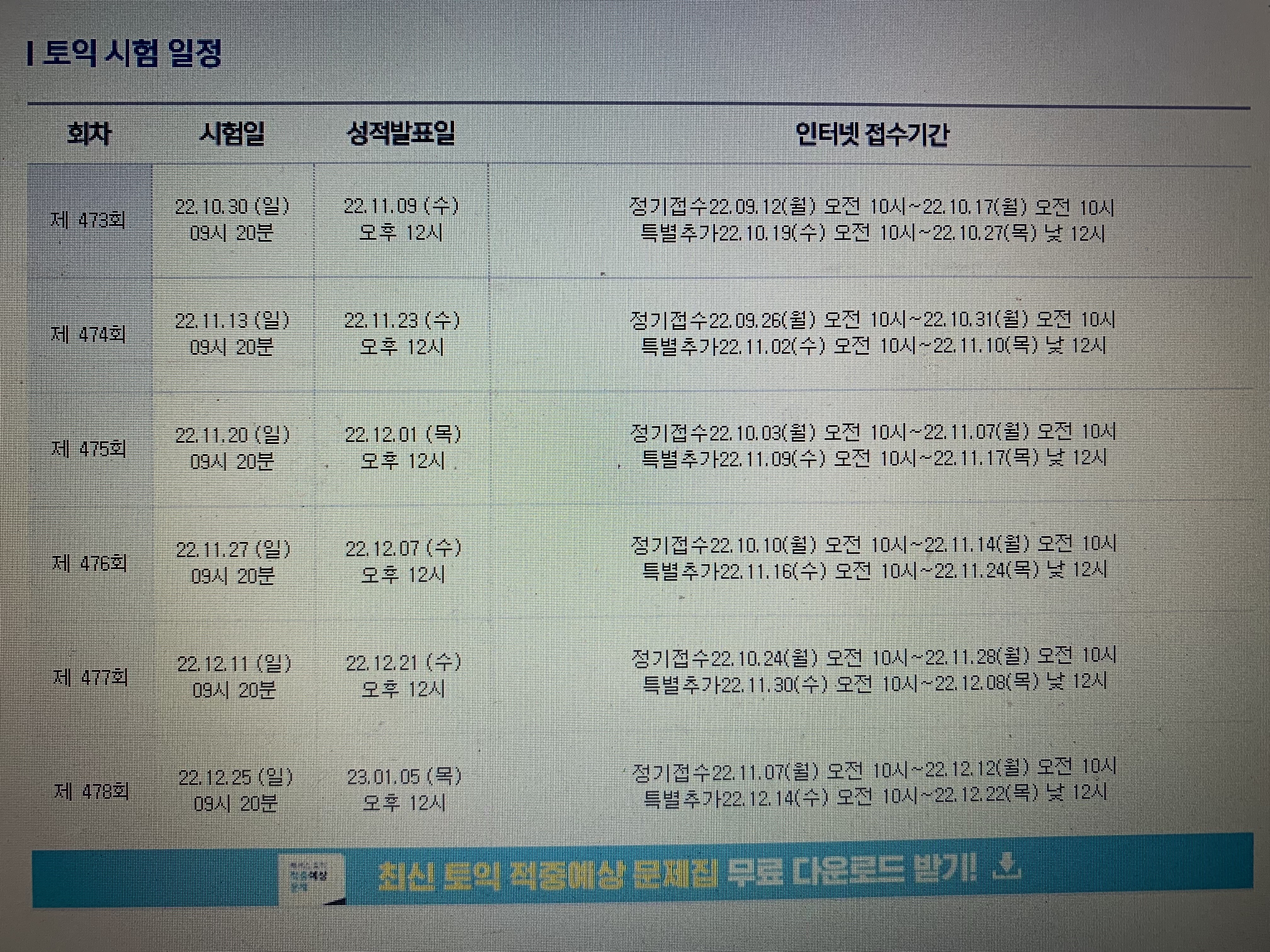 2022년 11월 토익시험일정부터 토익 기본적인 정보 확인한 후,