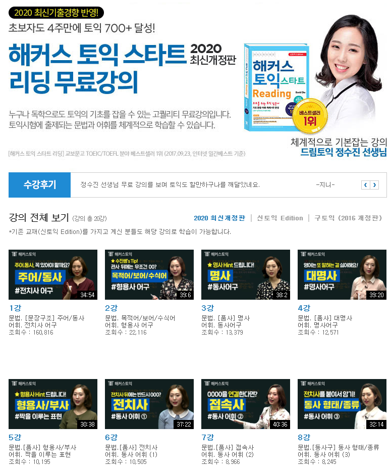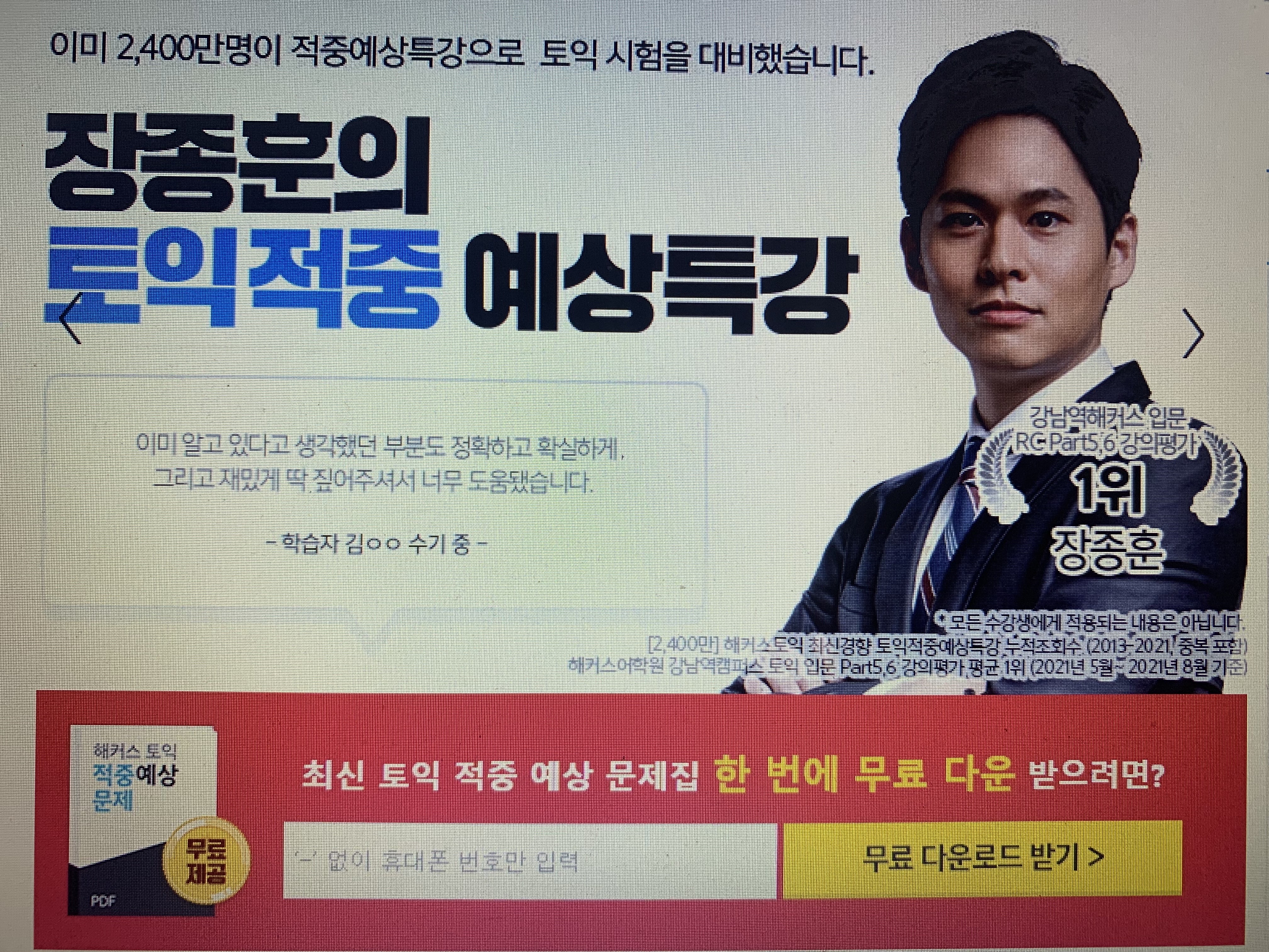 강의 퀄리티가 워낙 좋아서 토익강의만 정복해도 만점 절대 문제 없답니다!