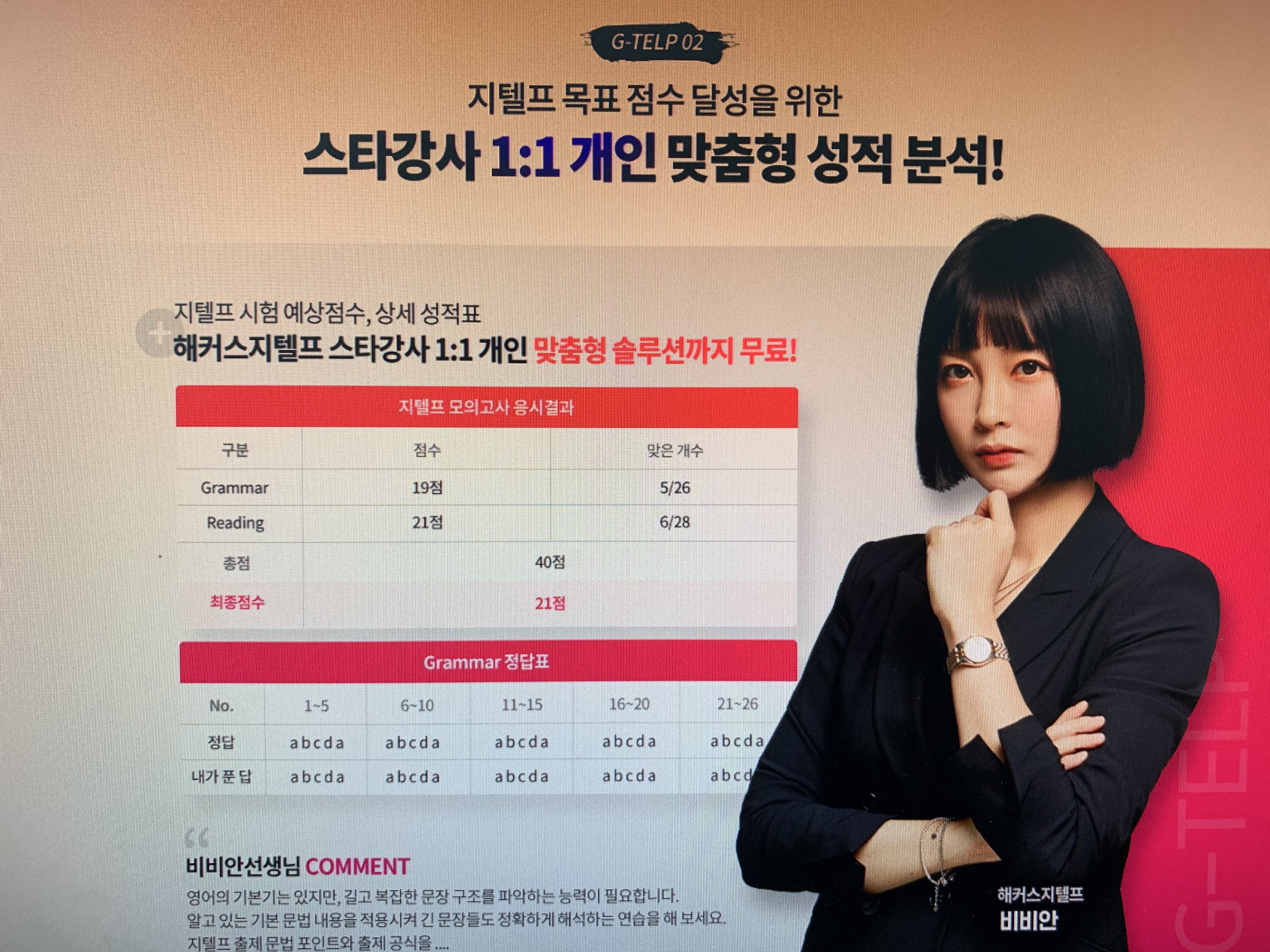 해커스 지텔프 스타강사의 1:1 맞춤 솔루션까지 무료로 제공된답니다!