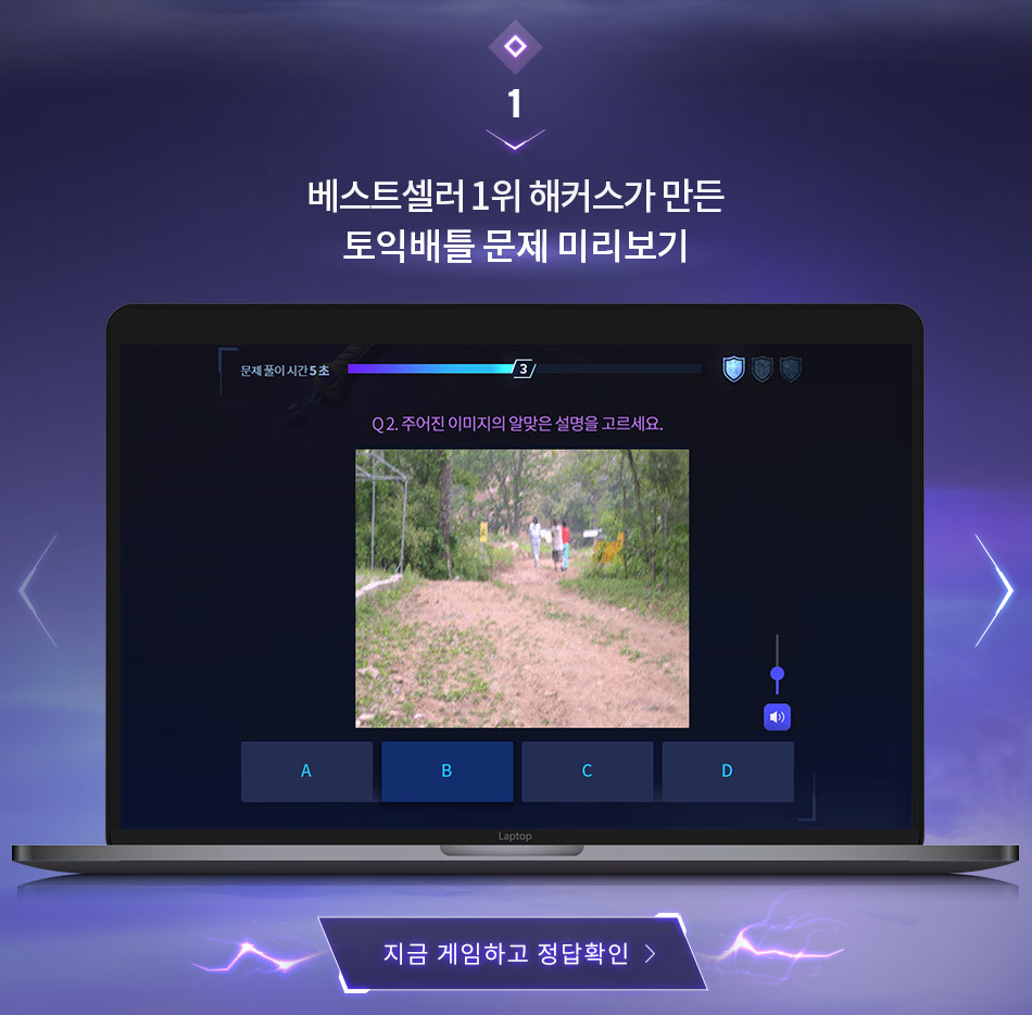 이 게임에는 토익 베스트셀러 1위 해커스의 노하우가 모두 담긴 고퀄리티 토익 게임이기 때문에